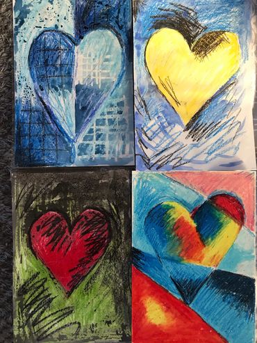Here are some of my works of art and examples of learning from my variety of workshops - Craft to Lift Your Mood, Pop Art Hearts and Candlemaking among a few.